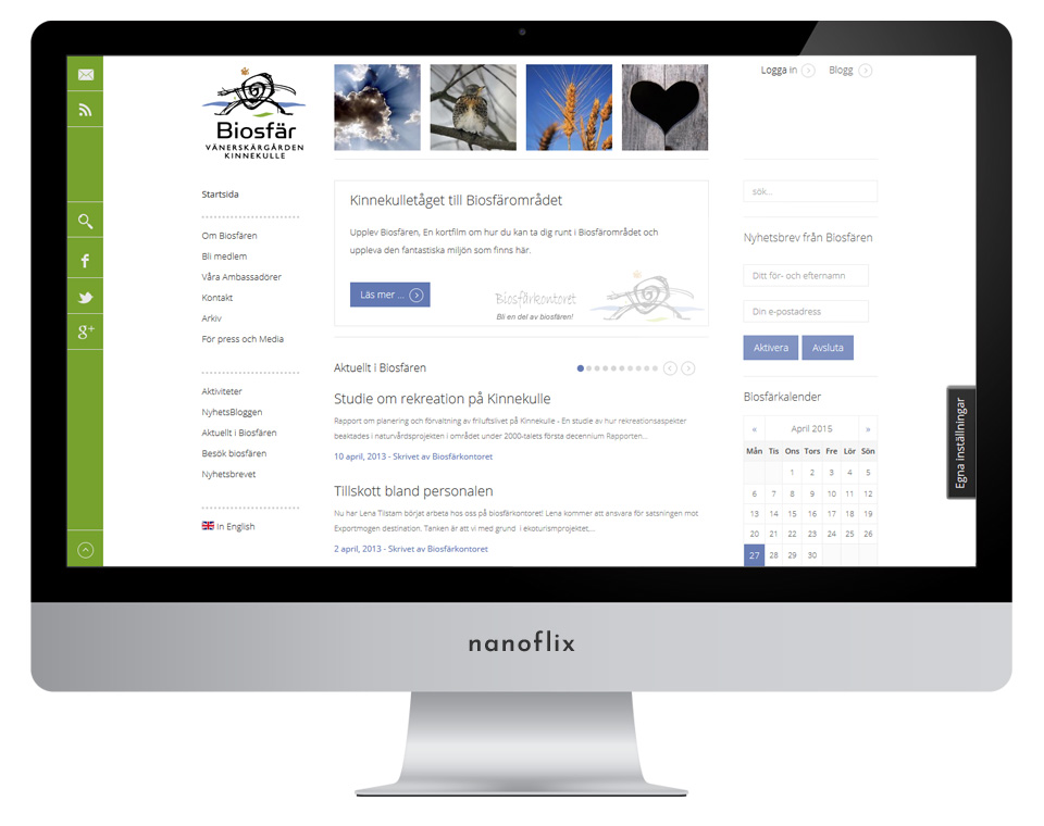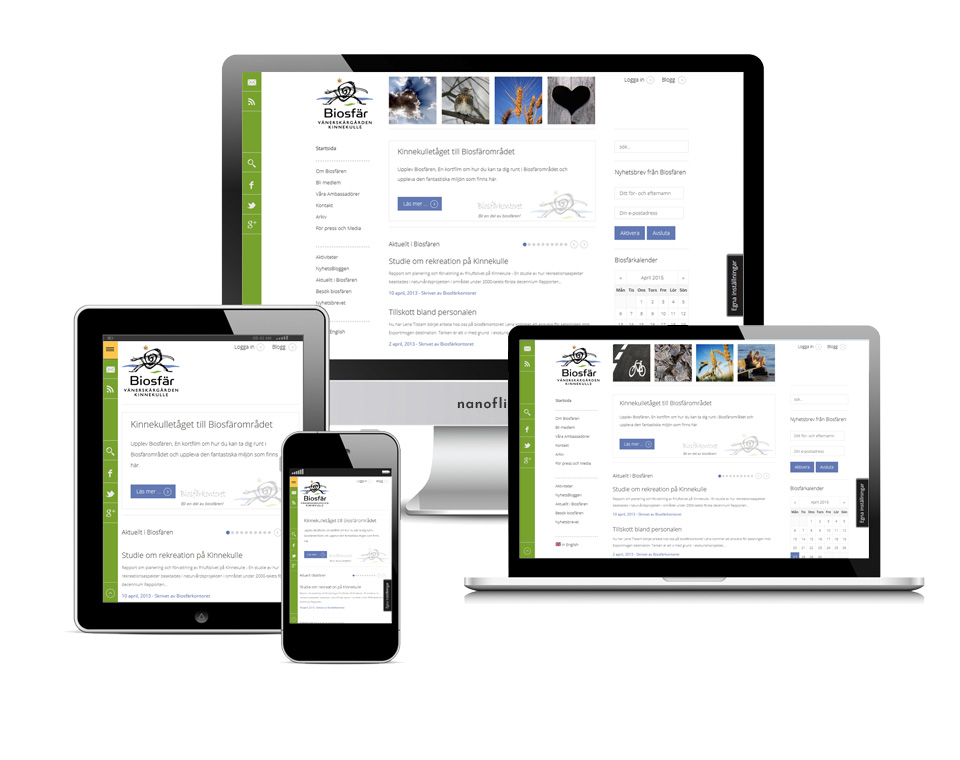 The word biosphere means everything living on earth and is about the interaction between man and the environment. A chosen area is designated a Biosphere Reserve by UNESCO. The assignment was to create a new version of the website for the Biosphere Reserve Vänerskärgården with Kinnekulle. With a clear graphic layout based on a graphic profile, migration of a large number of articles, the web page would also be responsive. In addition, it would be bilingual. The project included advanced web surveys, presentation templates and printed matter production.