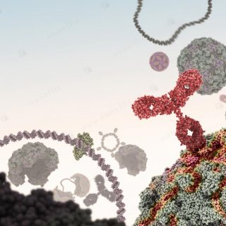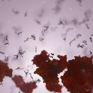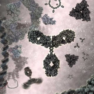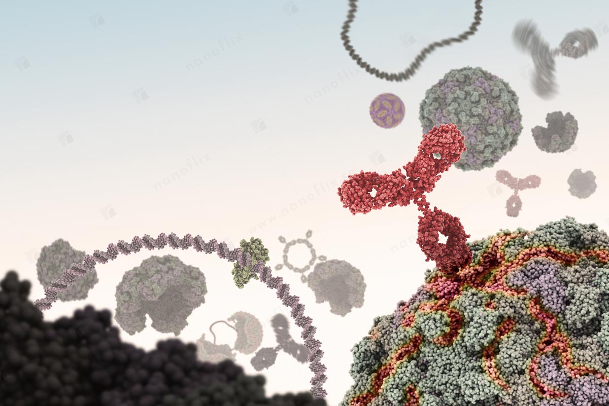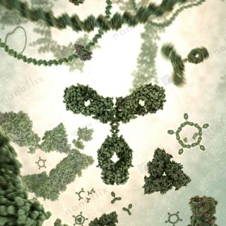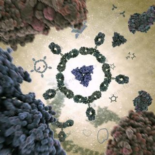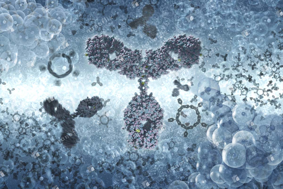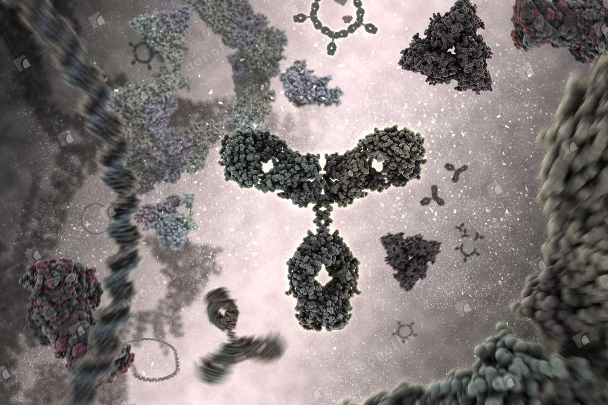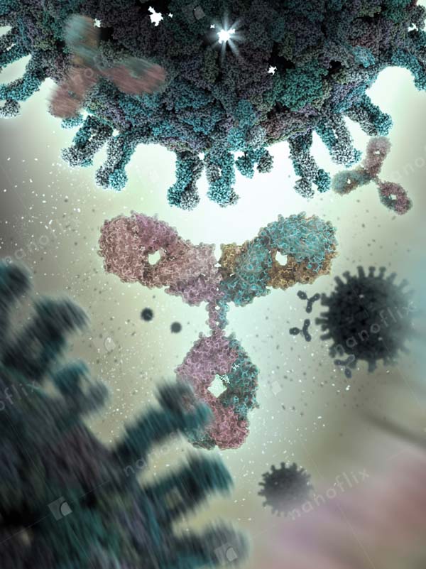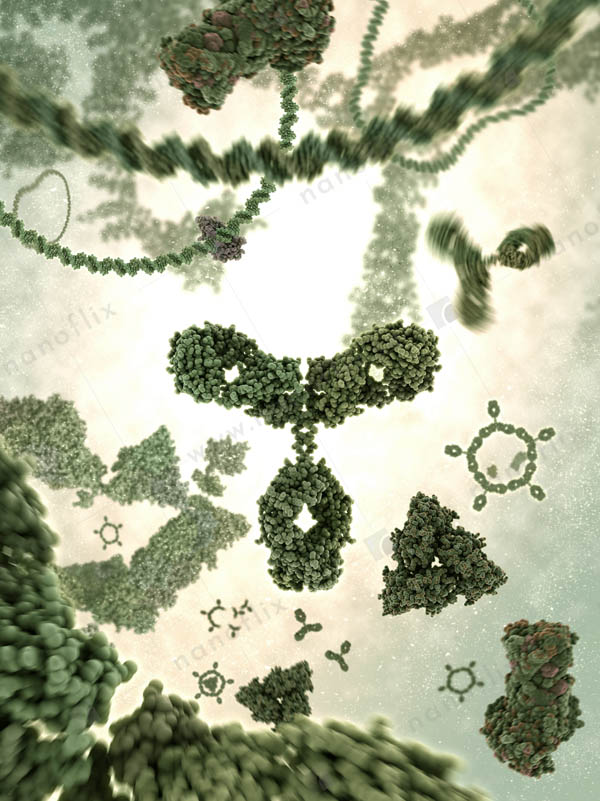 - Antibodies binding to an antigen. Antibodies are part of the immune system that identifies and neutralizes foreign objects.