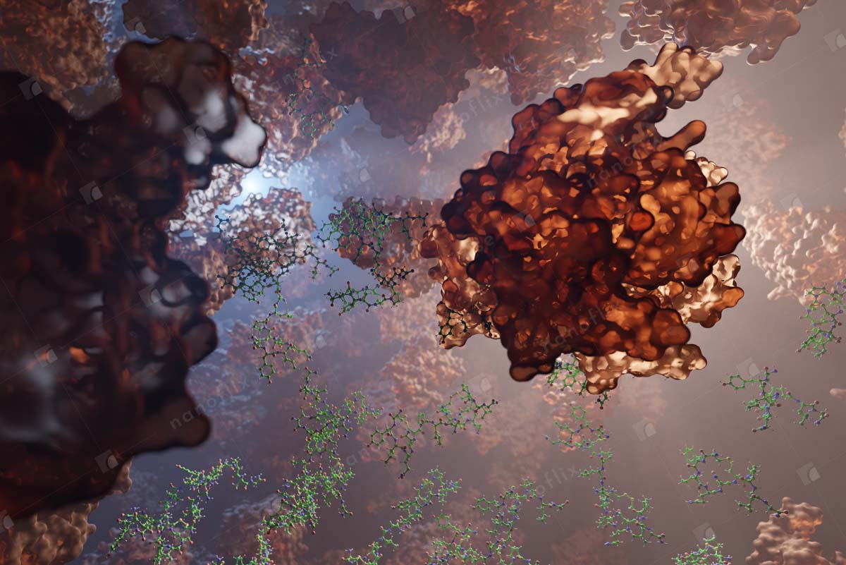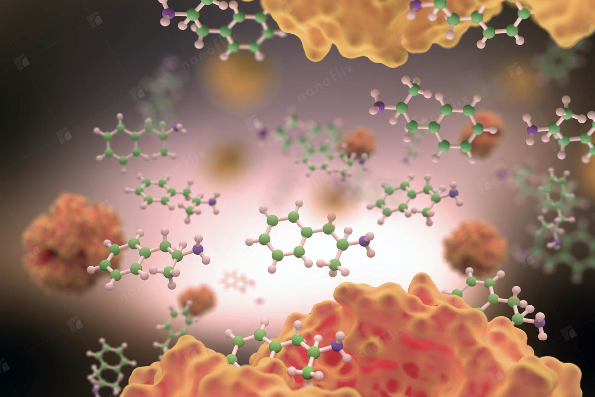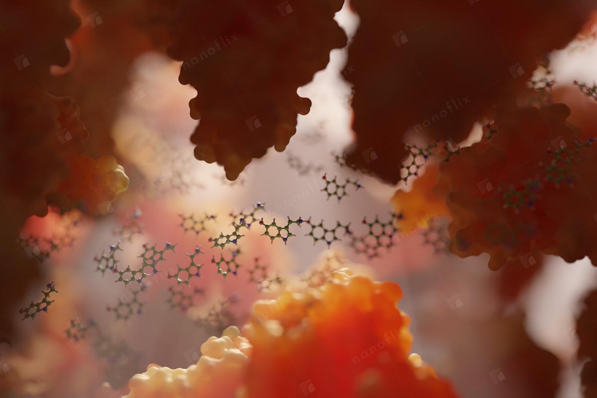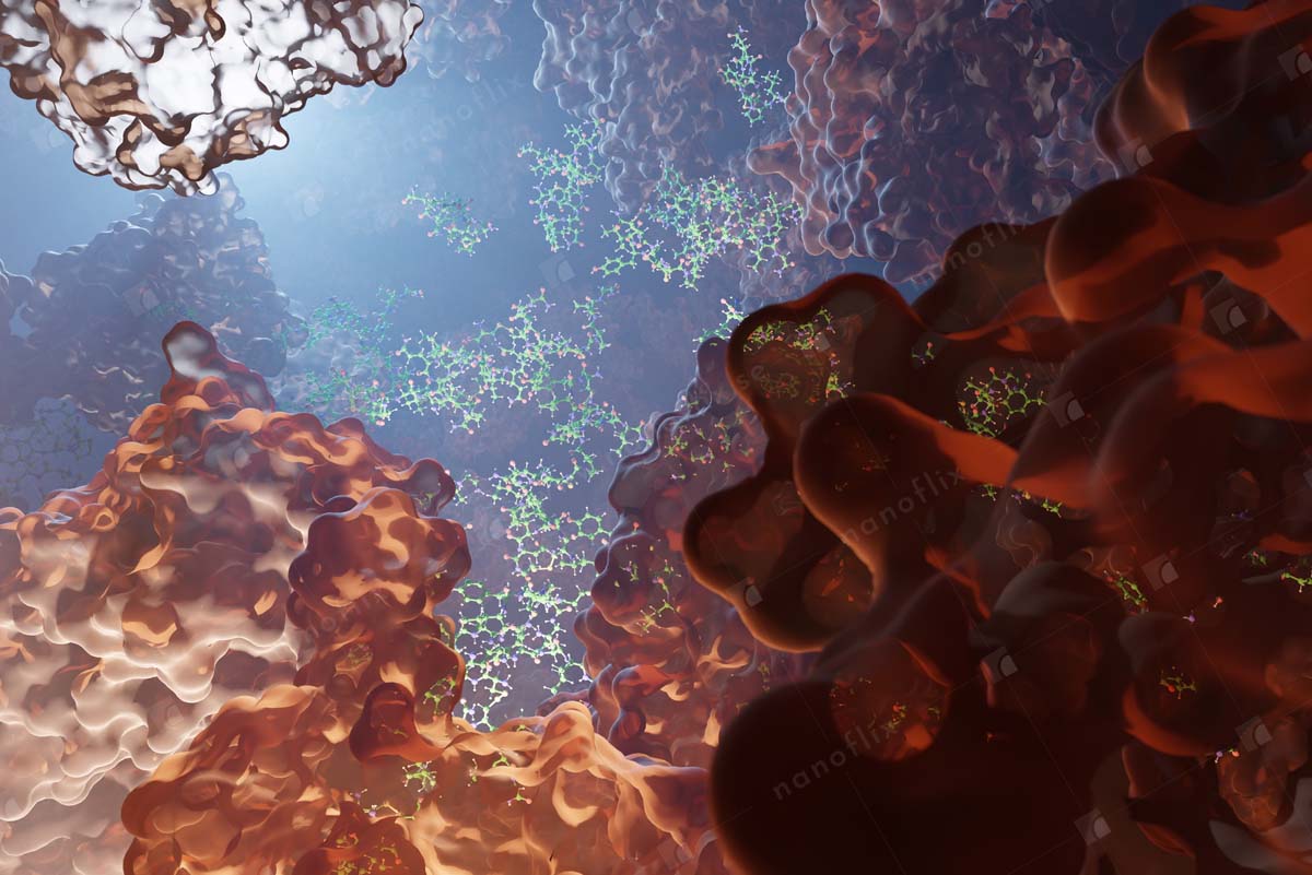 - Conceptual illustration of the interior of a cell.