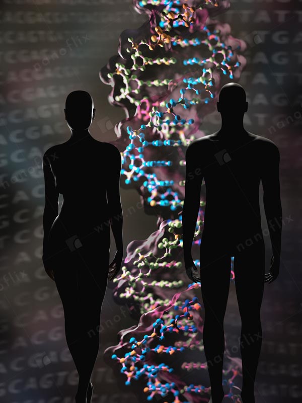 - Conceptual illustration of the genetic code that resides in the DNA double helix.
