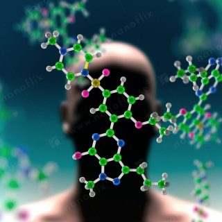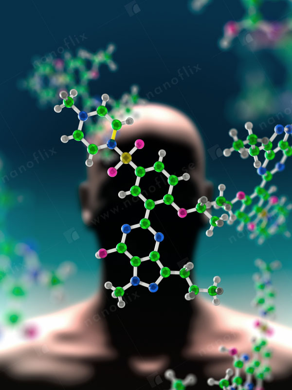 - Sildenafil (Viagra) molecule, a synthetic medicine for the treatment of impotency.