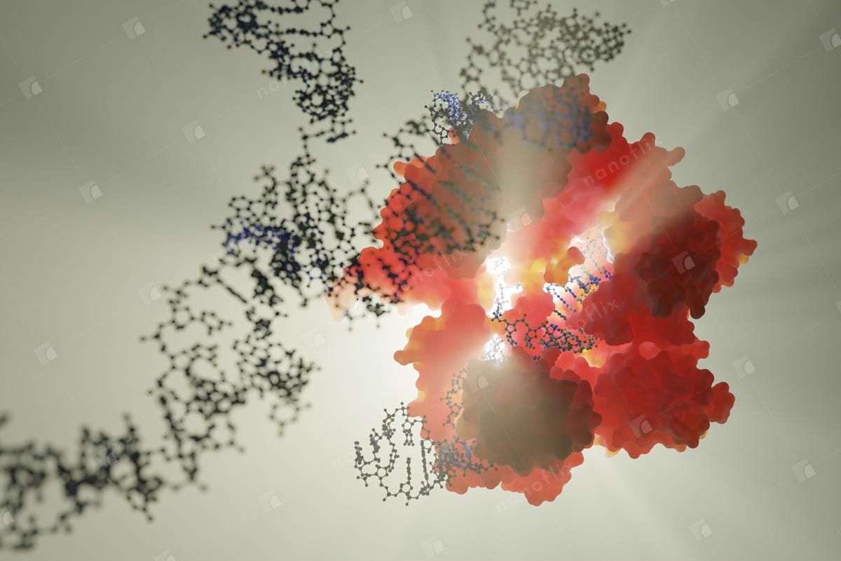 - DNA gene editing – CRISPR/Cas9. Working like genetic scissors, the protein (Cas9 nuclease) complexed with DNA and guide RNA, can modify or repair DNA (genome) with high precision.